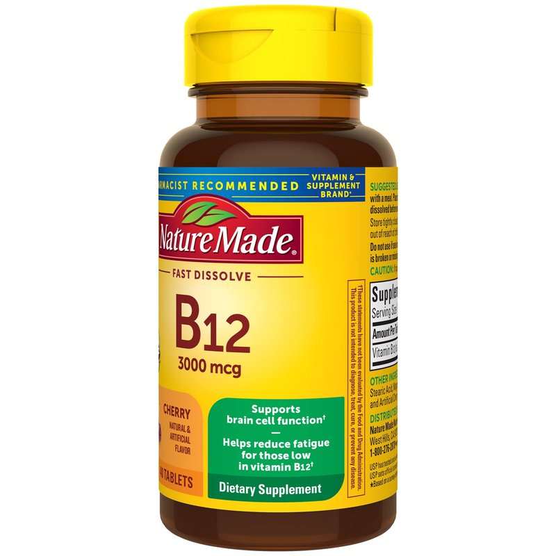 - Energy metabolism support supplement: contains one 40 count bottle of Nature Made Vitamin B12 3000 mcg Fast Dissolve Tablets for a 40-day supply(1)