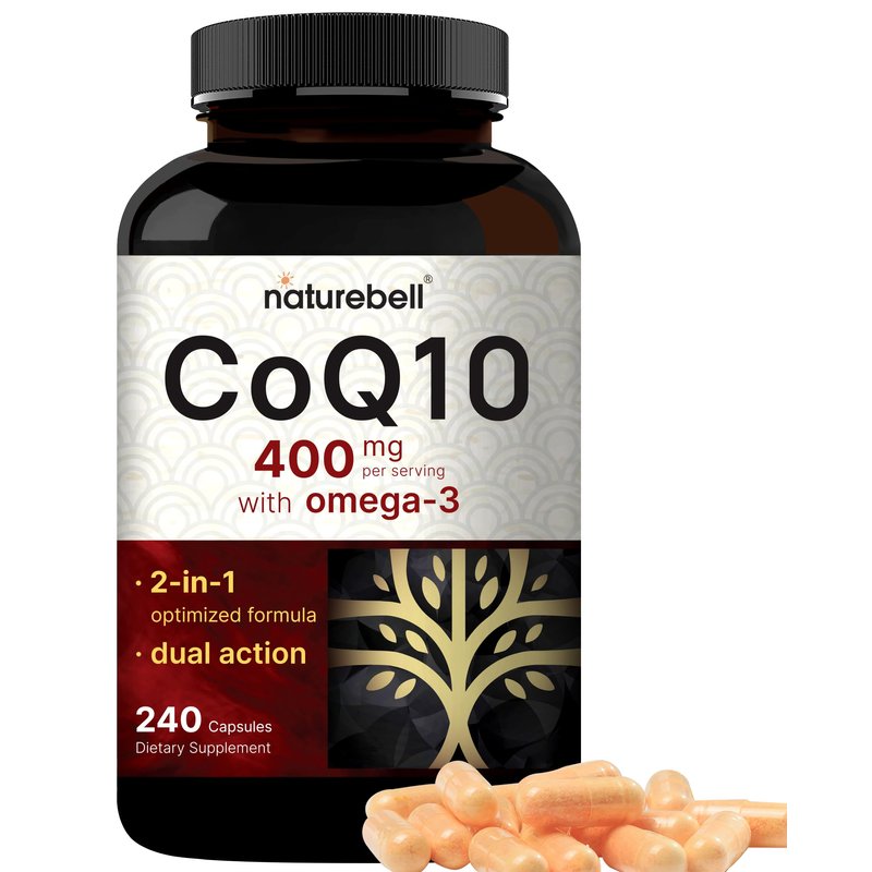 NatureBell CoQ10 400mg with Omega 3 Fatty Acids, 240 Capsules | Stable High Absorption Form – Antioxidant Support for Heart & Energy Health – Extra Strength Coenzyme Q10 Supplement