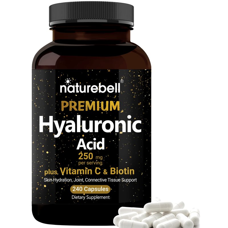 NatureBell Hyaluronic Acid Supplements 250mg | 240 Capsules, with Biotin 5000mcg & Vitamin C 25mg, 3 in 1 Support - Skin Hydration, Joint Lubrication, Hair and Eye Health