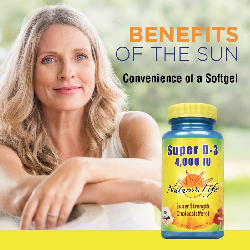 Nature's Life Super D-3 4000 IU | High Potency Vitamin D Supplement | May Support Healthy Bones, Teeth & Immune System | 100 Softgels