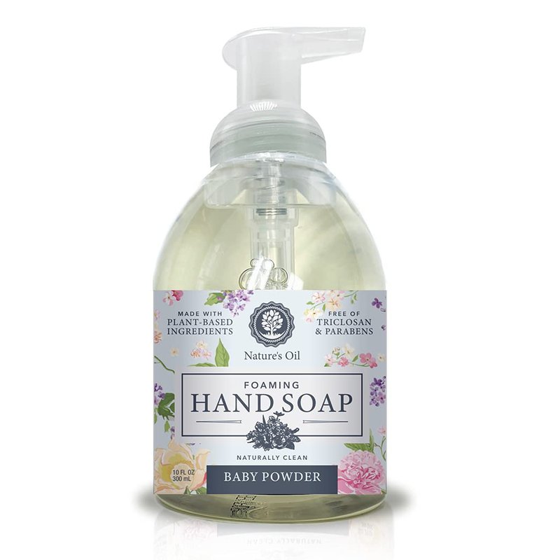 Our premium quality plant based soaps will leave your hands smooth and lighten your mood with the delightful scents that we have to offer. Our Baby Powder foaming hand soap delivers a clean and aromatic scent creating a comforting blend that is both fresh and familiar. Our soaps are made with our popular premium quality Natures Oil fragrances and are both paraben and triclosan free!