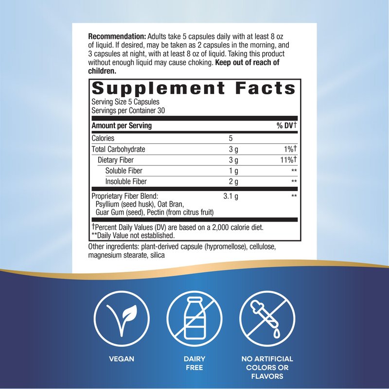 - Nature's Way Fiber Fusion Daily is formulated with a proprietary fiber blend to support digestive health.* Provides a good source of fiber per 5-capsule serving.