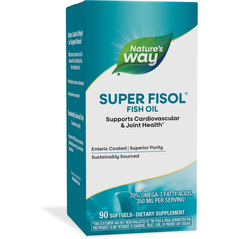 Nature's Way Super Fisol Fish Oil, Enteric Coated, Supports Cardiovascular and Joint Health*, Mega Potency Omega-3s, 90 Softgels (Packaging May Vary)