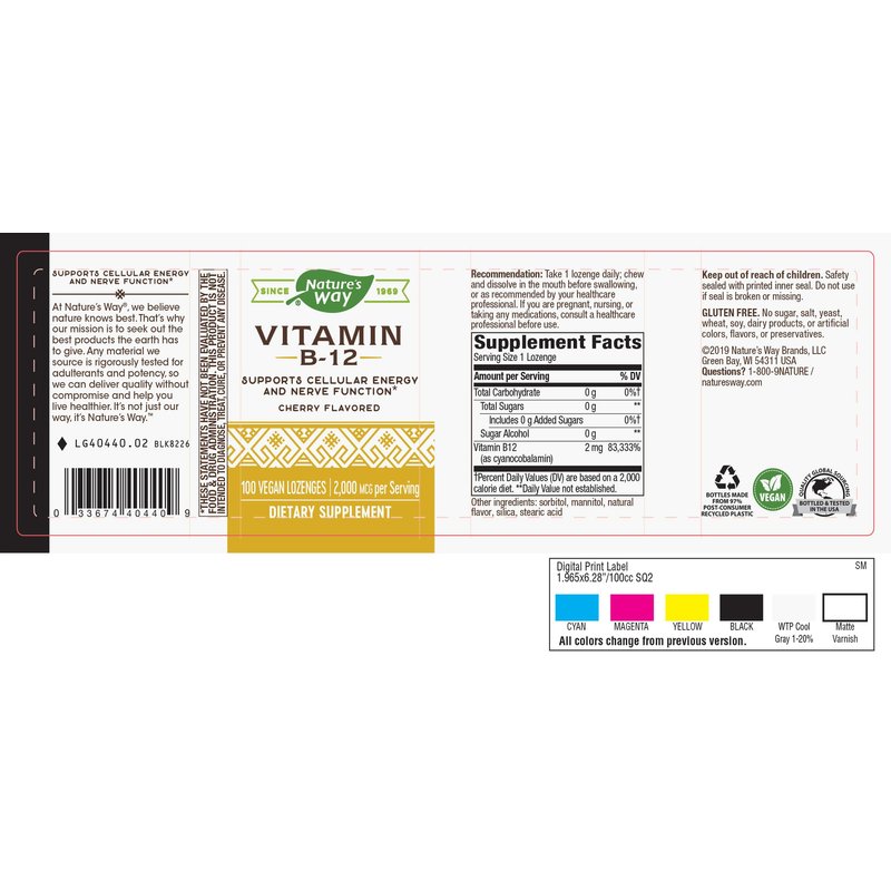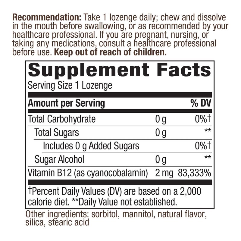 Nature's Way Vitamin B12 Lozenge, 2,000 mcg per Serving, 100 Count