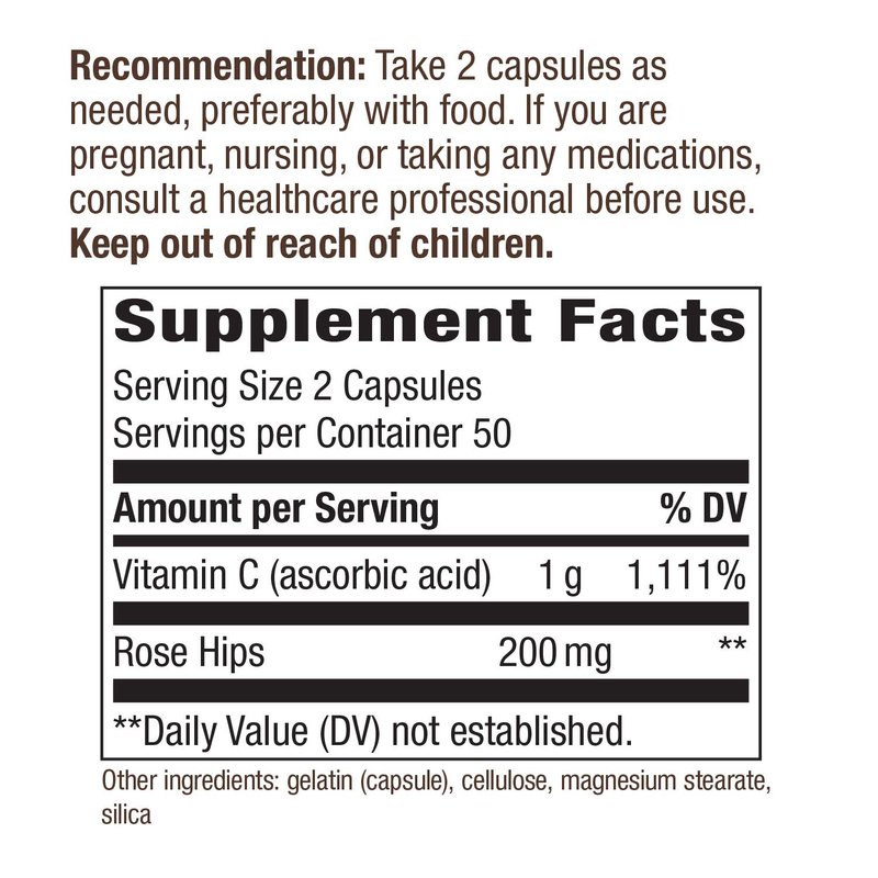 Nature's Way Vitamin C with Rose Hips; 1000 mg per Serving; 100 Capsules