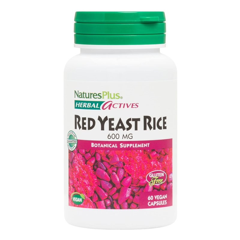 NaturesPlus Herbal Actives Red Yeast Rice - 600 mg, 60 Vegan Capsules - Maximum Potency Herbal Supplement, Cholesterol Support - Vegetarian, Gluten-Free - 60 Servings