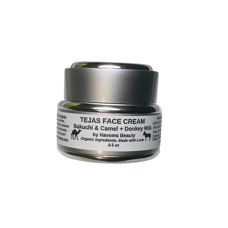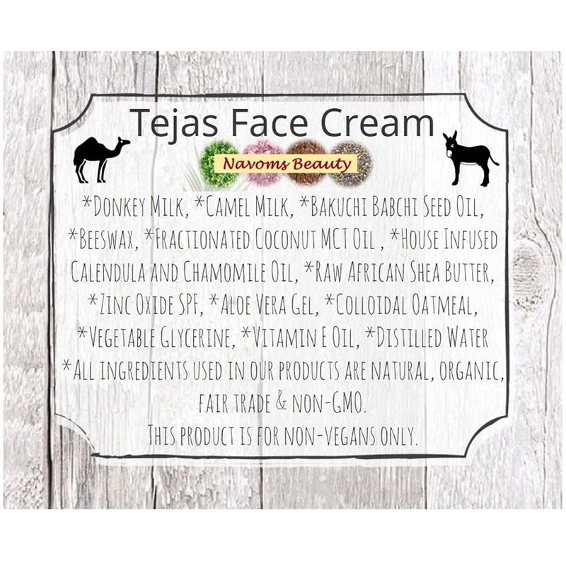 Navoms Beauty Organic Tejas Face Cream with Donkey & Camel Milk + Bakuchi Babchi Seed Oil, Zinc Oxide, Helichrysum Oil, All Skin Types, Anti Aging, For Sensitive Skin, Non Vegan (0.5 oz)