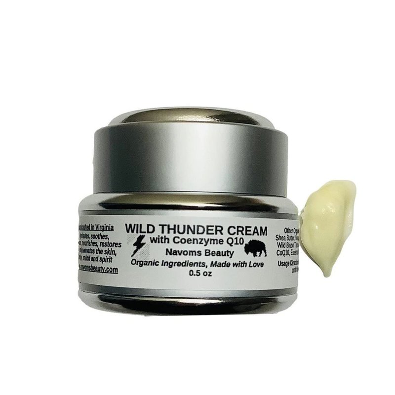 Navoms Beauty Organic Wild Thunder Face Cream with Bison Tallow & Camel Fat + Coenzyme Q10, All Skin Types, Anti Aging, All Purpose Cream, Non Vegan (0.5 oz)