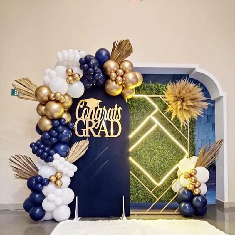 - Easy Setup : Our navy blue and gold balloon is easy to set up and customize to fit your event. Simply inflate the balloons with helium or air, tie them to the included ribbon, and you're ready to go! The balloons will stay inflated for hours, ensuring a beautiful display throughout your celebration.