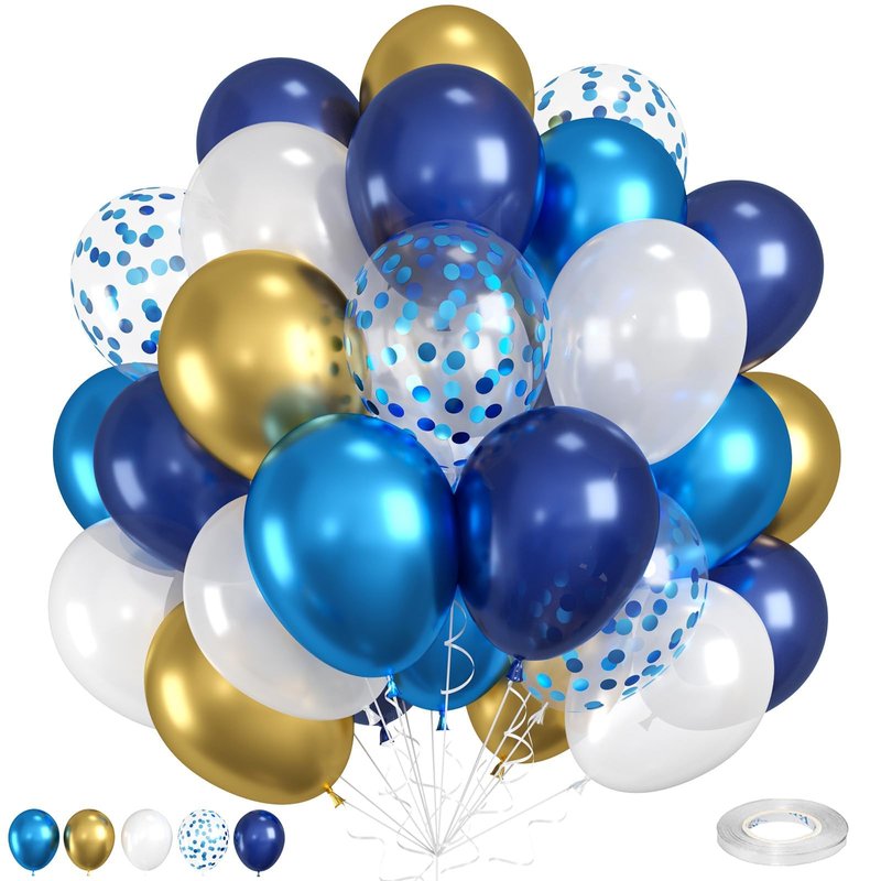 - Premium Balloons: These navy blue, gold, and white balloons bring together classic elegance and vibrant color. With no strong odors, they are safe for children.