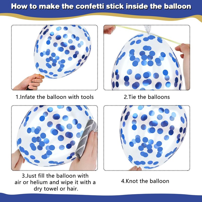 - Effortless Assembly: These navy blue and gold balloons can be inflated with air or helium. To make setup easier, an air pump is recommended. The included white ribbon helps you tie the balloons together into a stunning display.