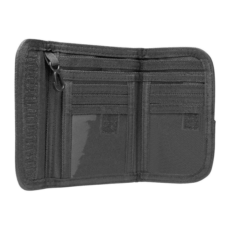 - Urban Gray bifold wallet with several ID & credit/membership card pockets inside and out. The wallet has a hook and loop fastener enclosure flap