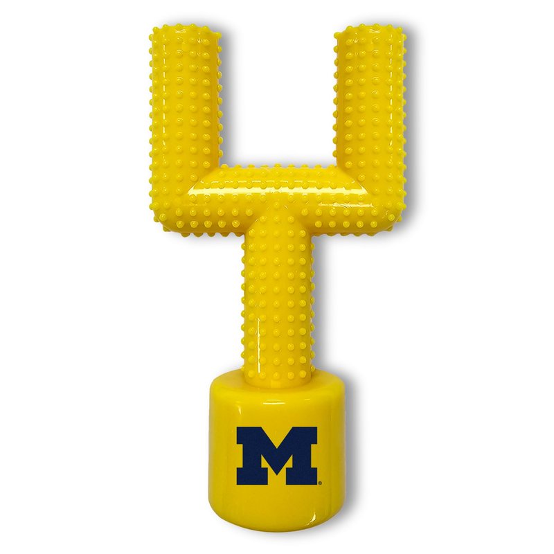 NCAA Michigan Wolverines Mega-Chew Hard Nylon Bacon-Flavored Dog Bone Football Goal-Post Chew Toy. Interactive, Tasty & Fun Dog Chew Toy. Indestructible, Strong, Tough & Durable Pet Chew Toys