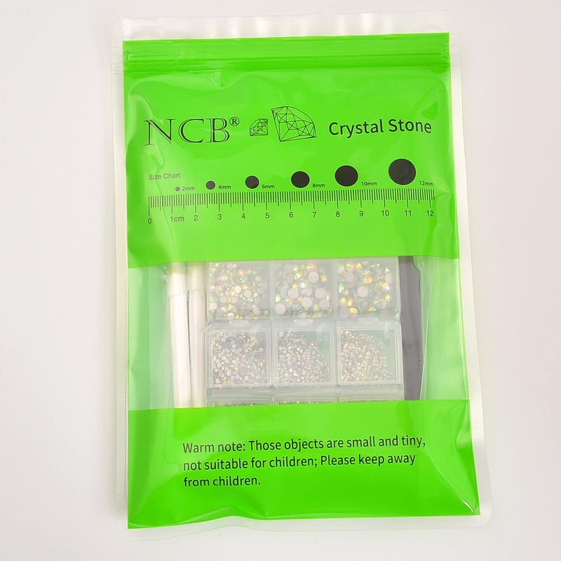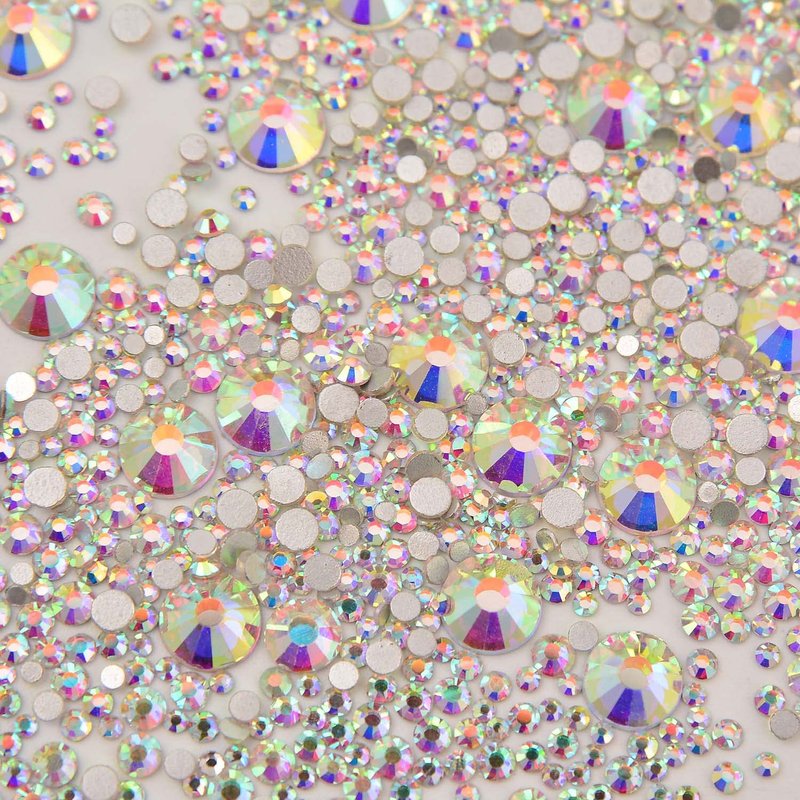 Nancybeads Mini Rhinestones Tiny Diamonds Charms Gems Stones Beads 3D for Nails Art Craft Specification: Color: Crystal AB Material: Glass Shape: Round Size: SS3 (1.3mm) to SS30(6.5mm) Quantity: Total 8000pcs Features of Nancybeads Flat Back Crystals Nail Art Rhinestones Gems - Glass materials, bright surface, high quality nail art rhinestones crystals, more charming decoration - Good shape, smooth cutting edge, delicate made, nail art rhinestones extra bling and sparkle - Bling and sparkle Rhinestones, extra charming and eye-caching in the crowded, shine last long - Mixed shapes and sizes combinations, more choice to create your favorite nail art style - Large amount of rhinestones in pack, great to decorate nails, face and boy, garment, shoes, clothes, cell phone's case, glasses, gift box and so on How To use? 1. Clean the surface of nails 2. Brush base polish on nails 3. Place crystals onto nails 4. Seal with a clear topcoat 5. Nail art decorations finish Note: 1. These flat back glass crystals are NOT hot fix glass stones, you need to use glue to stick them 2. Small objects, please leave the products away for children under 3 years old