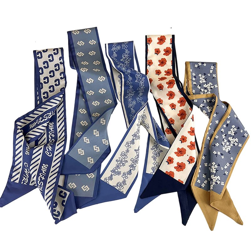 NCDUANSAN Retro small silk scarf girl heart spring and summer narrow ribbon headband headband bag decoration long scarf headdress (blue hair band 5pcs)