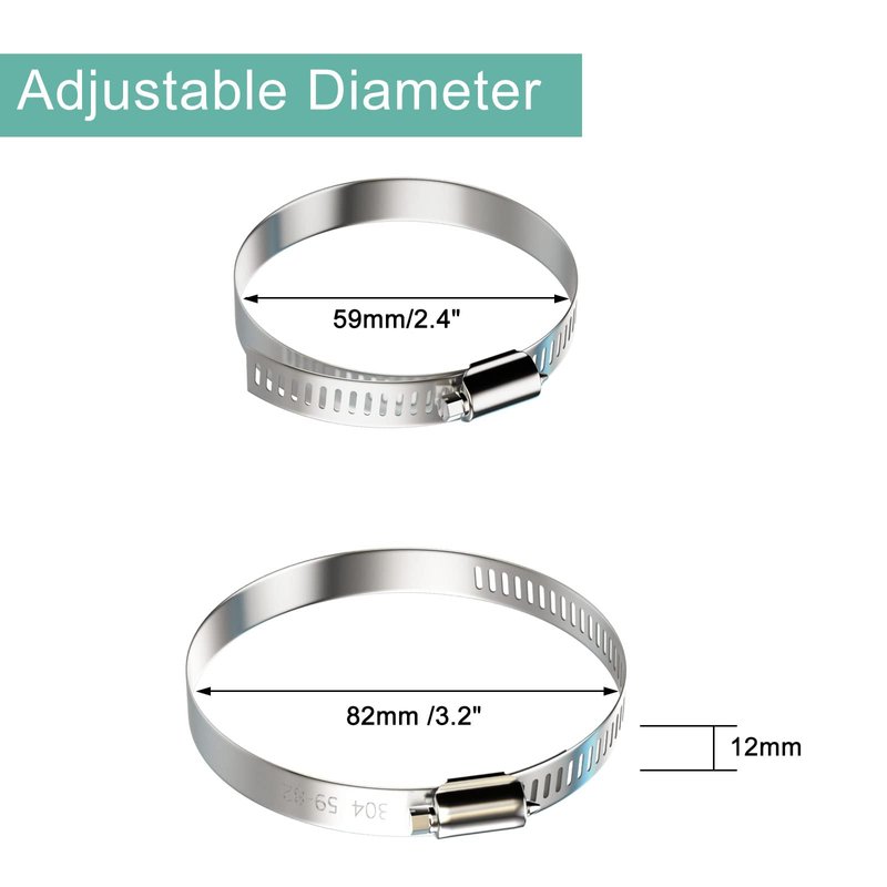 Hose clamp adjustable range: 2.4inch-3.2inch /59-82mm(diameter)