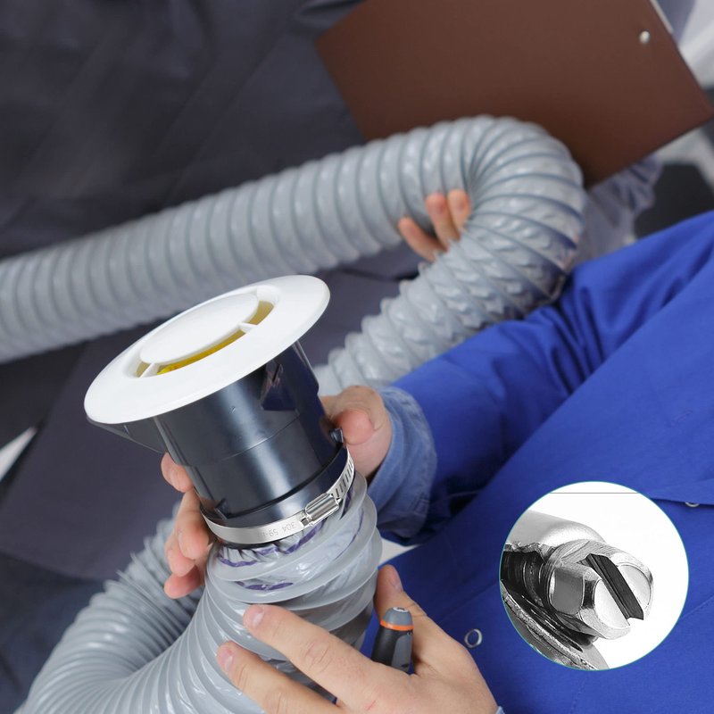 - Flexible Adjustable: stainless steel hose clamps with wide adjustable diameter sizes ranging from 2.4inch-3.2inch /59-82mm, secures different diameter ducting tightly in place