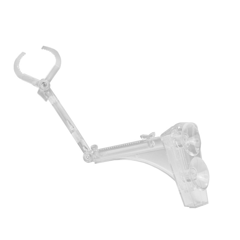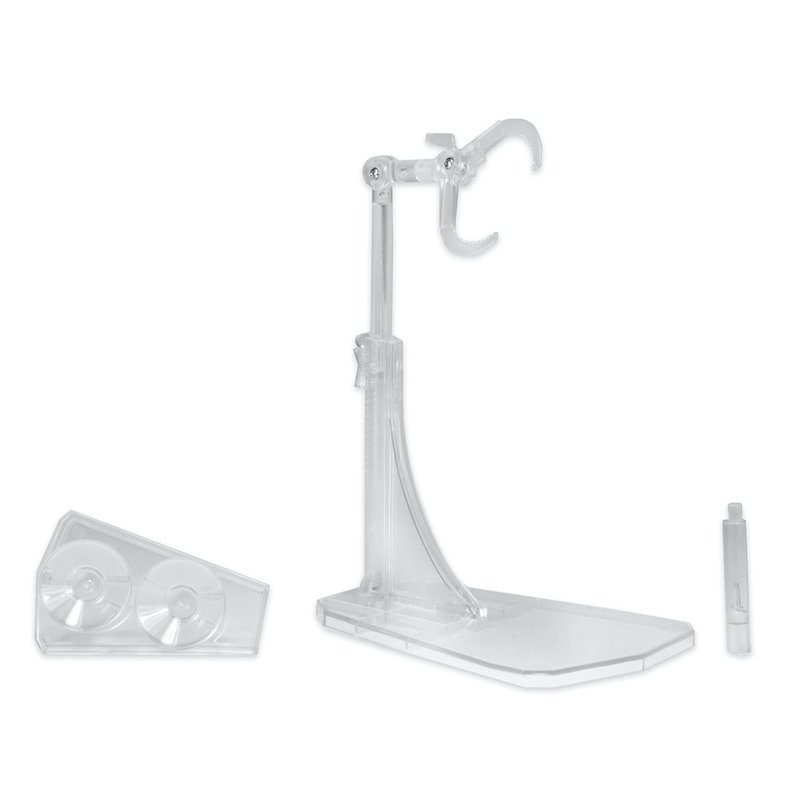 - Clear stand with 2 bases for horizontal and vertical surfaces