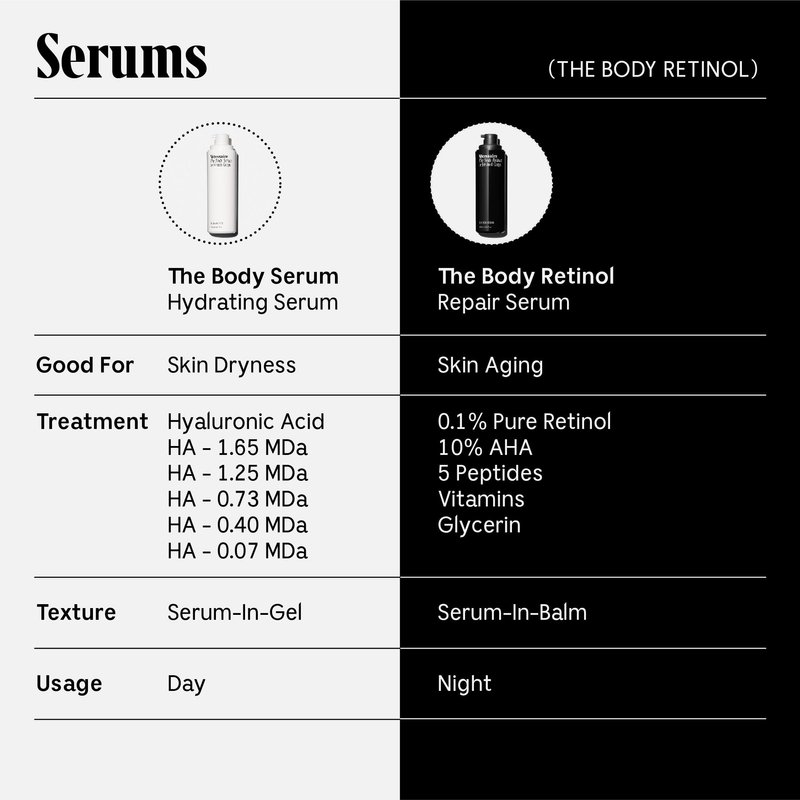 - SKINCARE FOR THE BODY: The Body Retinol is a repair serum for the skin formulated to help treat and prevent crepiness, lines, wrinkles, spots and marks.