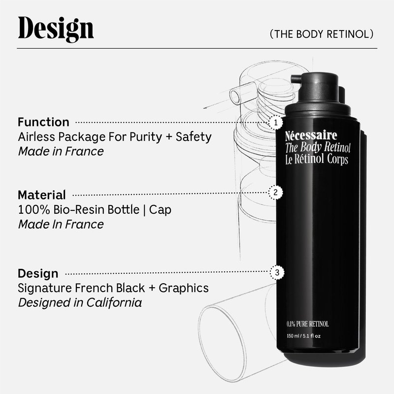 Nécessaire - The Body Retinol. Retinol Repair Serum + Retinol Body Lotion In One. Crepey Skin Treatment. Wrinkle + Line Prevention. 0.1% Pure Retinol + 10% AHA. 5.1 oz