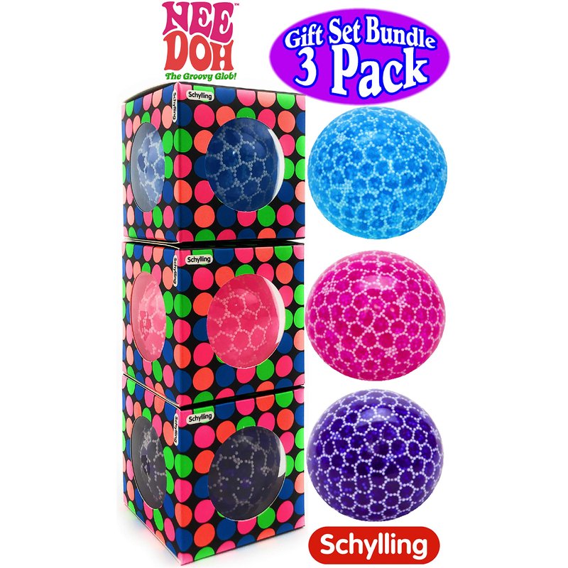 Schylling Nee-Doh Bubble Glob Groovy Glob! Squishy, Squeezy, Stretchy Stress Balls Blue, Pink & Purple Complete Gift Set Party Bundle - 3 Pack, is AWESOME! Gift Set Party Bundle Includes All 3 Different Colors of Schylling's Nee Doh BUBBLE GLOB Groovy Glob! Need to mellow out? Squeezy does it! Bubble Glob NeeDoh makes manic minds mellow. Experience the soothing squish and squeeze of these juicy, jelly bubble beads. Give it a squeeze, a squish, a pull or a smush, it'll sooth your soul and get you feeling groovy fast! Includes Blue, Pink & Purple. Perfect for schools, party favors, special needs, the office, stress relief and so much more! A great fidget toy; appropriate for those with ADD, ADHD, OCD, Autism and anxiety; helps promote focus, attention and centering. For ages 3 and up - Perfect for the family! - Dimensions for each: 2.5" Round.