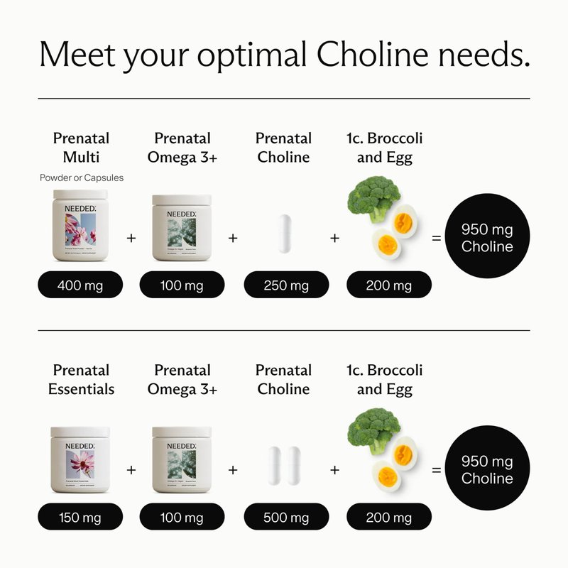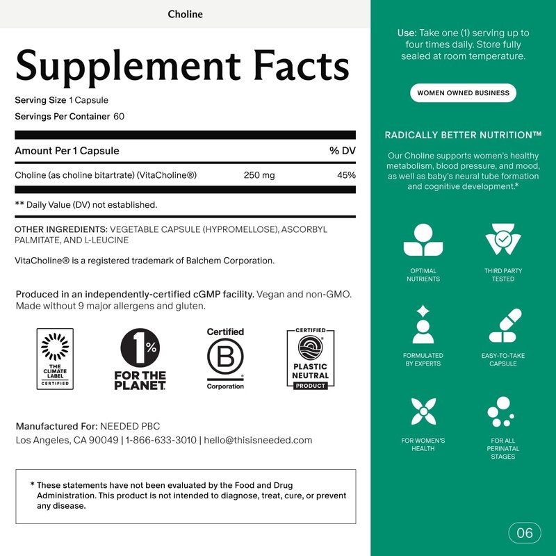Needed. Prenatal Choline for Cognitive Development - Choline Supplement Aids Baby Brain Development - Supports Healthy Pregnancy & Metabolism - Third Party Tested - 60 Capsules
