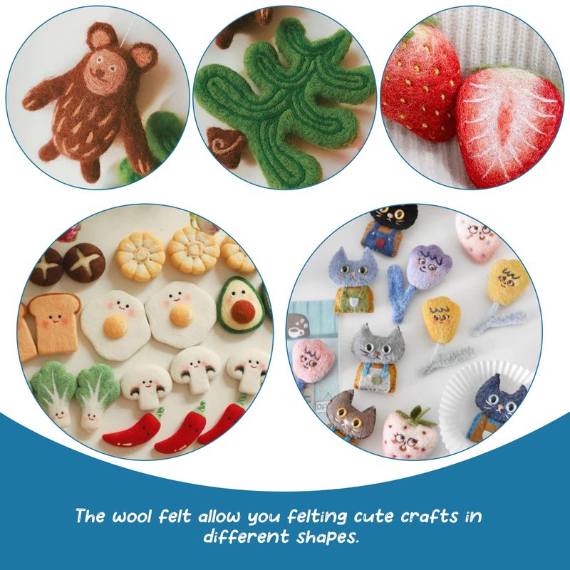 - 🐑 Better Needle Felting Pad: In order to make your felting starter kit better, we provide you with larger and thicker felting pads. Our needle felting pad is made of soft felt and upgraded sponges. Our test found that this needle felting mat is stronger than a foam mat and does not collapse easily. Can be recycled multiple times. More green. Worry-free needle felting, free your hands.