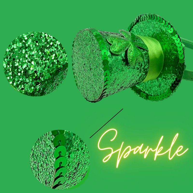 - LUCK OF THE IRISH- Feel extra lucky this St. Patrick's Day, This green sequin and tulle top hat headband is perfect for St. Patrick's Day! It's festive and fun, and will really help you get into the spirit of the holiday.