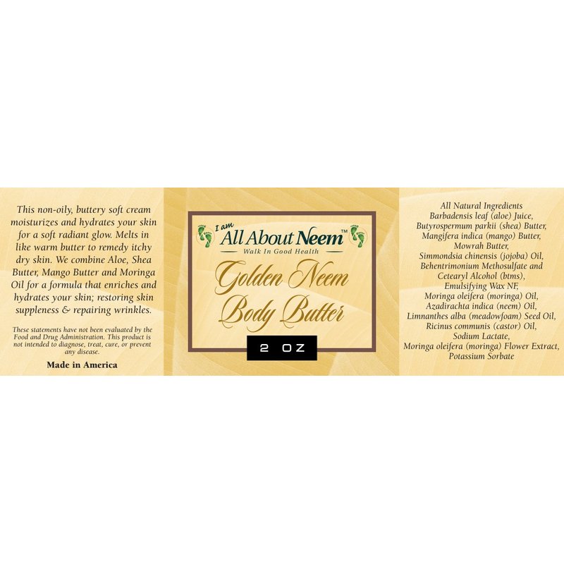 Neem Oil "Golden Body Butter" Organic with Hemp, Moringa, Mango, Mowrah & Shea Butters 8 Oz Jar Hydrating Neem Skin Cream
