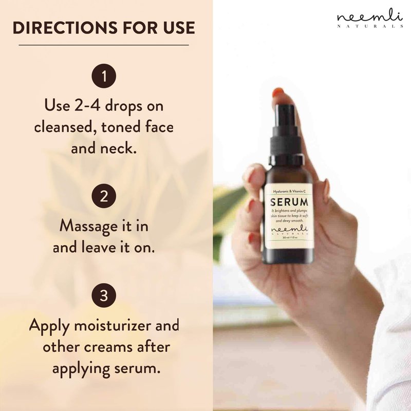 Neemli Naturals Hyaluronic & Vitamin C Serum, Light and Non-Greasy Age-Defying Serum, Brighten Skin Tone, Water Gel Daily Face Moisturizer for All Skin Types, 30ml (Pack of 1)