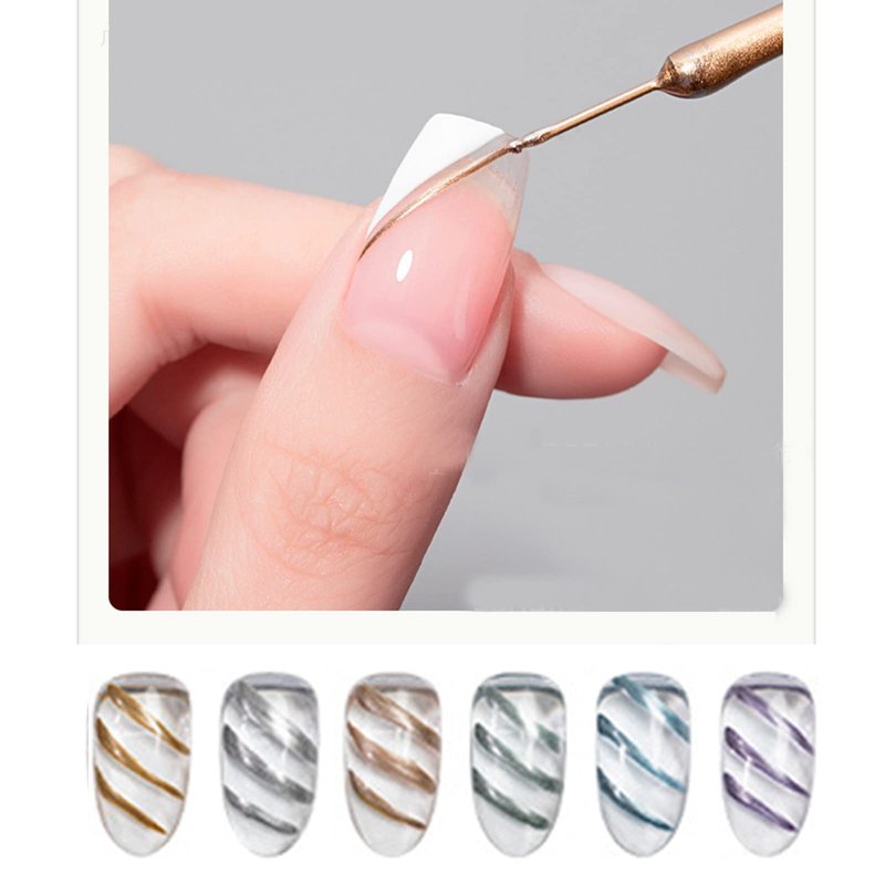 - 6 Colors Metallic Pull Line Gel Drawing Painted Nail Gel Polish (GOLDEN, SILVER, ROSE, PURPLE, GREEN, BLUE)