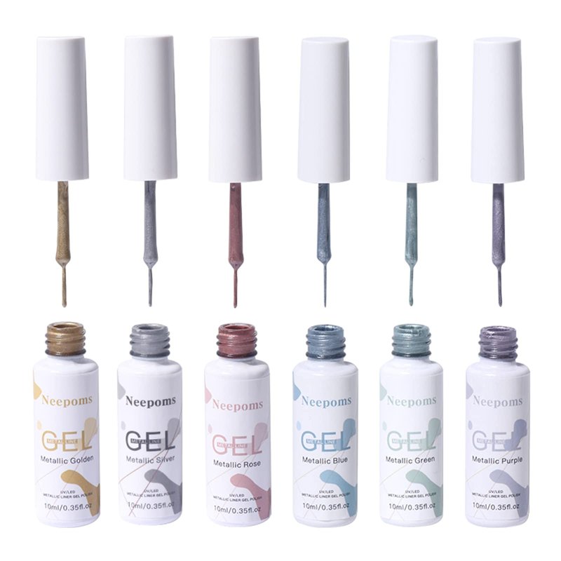 Neepoms 6pcs Metal Liner Gel Nail Polish Metallic Line Gel Polish DIY Drawing Painted Nail Gel Set 10ML