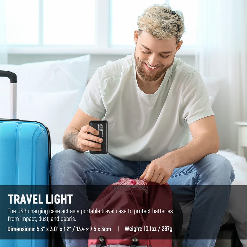 - 【Versatile Charging Case】 Not just a charger. The USB charging case can simultaneously charge two batteries and act as a portable travel case to protect batteries from impact, dust, and debris. It also features two SD card holders and works as a portable charger for smartphones when batteries are installed inside