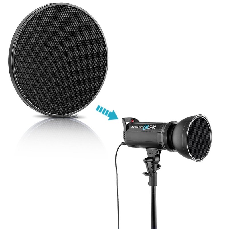 - 7"/18cm standard reflector with 10/30/50 degree honeycomb grid for bowens mount studio light strobe.