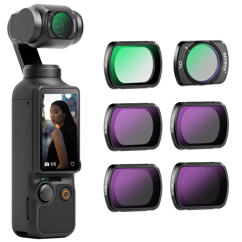 NEEWER Magnetic ND CPL UV Filter Set Compatible with DJI OSMO Pocket 3, 6 Pack UV CPL ND16 ND32 ND64 ND256 CPL Polarizing and Neutral Density Filters, Multi Coated HD Optical Glass/Aluminum Frame