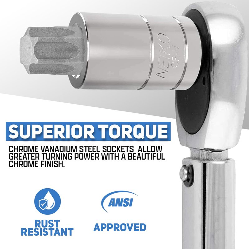 Neiko 10086A 6 Point Torx Plus Bit Socket Set, 1/4-Inch, 3/8-Inch and 1/2-Inch Drive, TP8 - TP60, 12-Piece