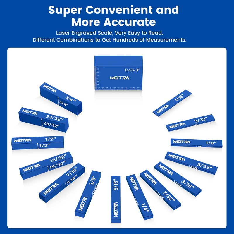 Neitra 15 Pieces Solid Metal Aluminum Alloy Setup Blocks Height Gauge Set for Woodworking