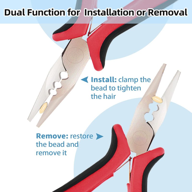 - 【Multifunction】: Our extension remover tool is specially use to open all sizes of Microbeads and Nano Rings. You can use the hair pliers to clamp the rings to tighten the hair or restore the beads and remove them. The micro link tools will offer efficient installation and removal, microbead hair extensions is no longer a trouble.