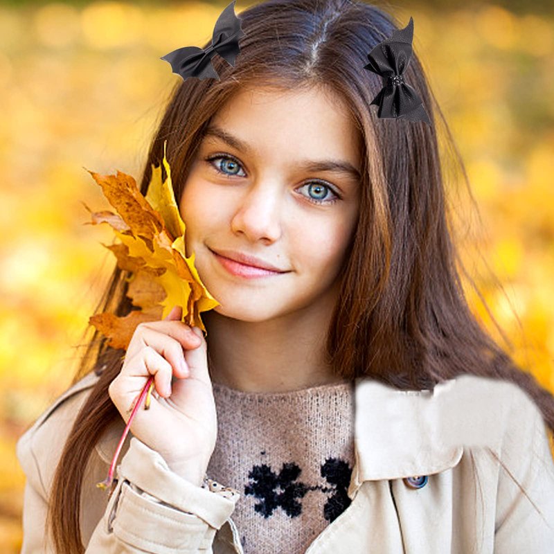 Neknock Bat Hair Bow Clips for Girls Women, 4pcs Halloween Bat Wings Gothic Cosplay Costume Hair Accessories for Halloween Party Decorations