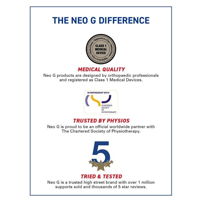 - MEDICAL GRADE: Registered internationally as a Class 1 Medical Device. Made to the highest quality and compliance standards by Neo G, trusted by physios. Official worldwide Partner of the Chartered Society of Physiotherapy