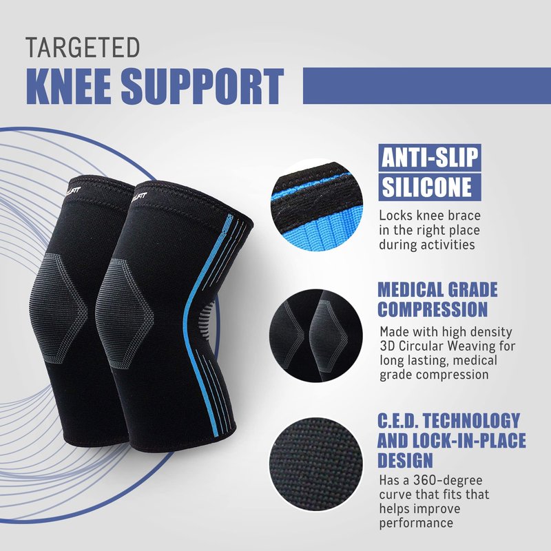- All-around Compression Knee Sleeves - This athletic knee brace is comfortable to wear and durable for long-term wear. Our knee sleeves provide optimal knee support whenever you play sports, go to the gym, run errands, and more.