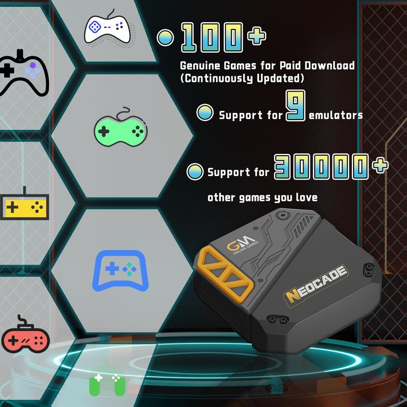 NEOCADE Retro Gaming Console, Game Consoles Built in 30 Games & 30000+ GlobalMatch Online Gaming Platform with Dual 2.4G Wireless Controllers