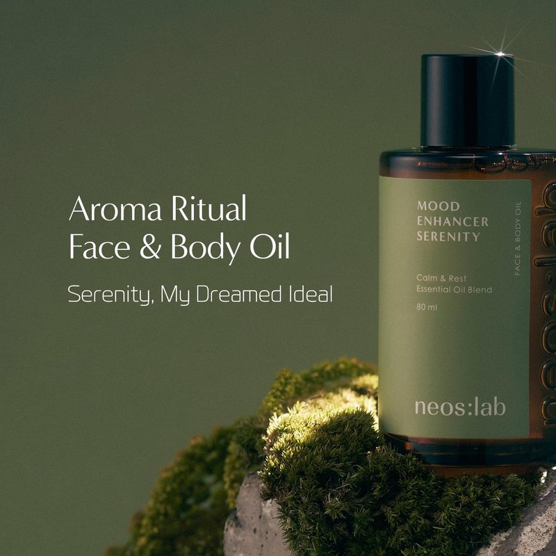 neos:lab Mood Enhancer Serenity Face & Body Oil 2.7 fl.oz. (80ml) - Vegan Aromatherapy, Basil & Hinoki Scent, Hinoki Oil, Hydrating Facial, Body Oil for Nourishing, Glowy Skin, Gua Sha Oil