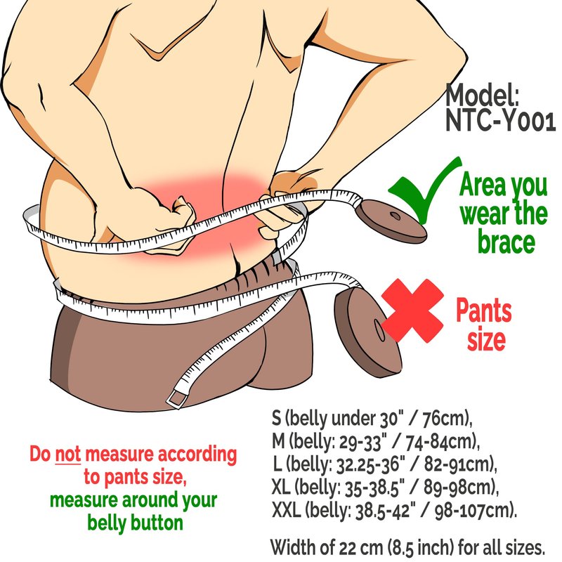 *When measuring size please measure around the area where you will put the back support belt, usually around the belly button (please refer to product picture showing how to measure).