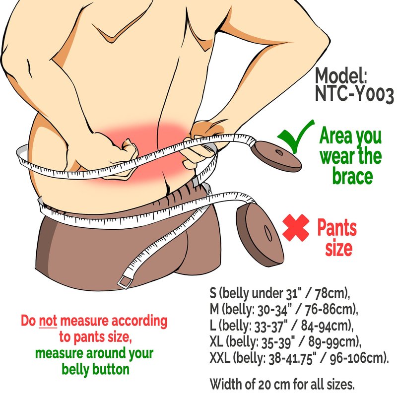 When measuring size please measure around the area where you will put the back support belt, usually around the belly button (please REFER TO PRODUCT PICTURE SHOWING HOW TO MEASURE)