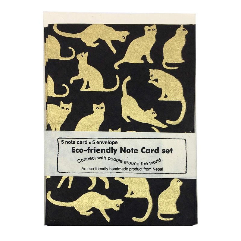 Nepal Greeting Card and Envelope Set: Cats, Eco-friendly Handmade Lokta Paper
