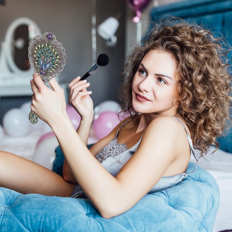 Utility: Peacock pattern, heart-shaped mirror, vintage style design. Attractive color matching. Hand-painted. On machine-made metal bases, craftsmen manually fill in colors. Great choice for makeup mirror which fully displays uniqueness and taste