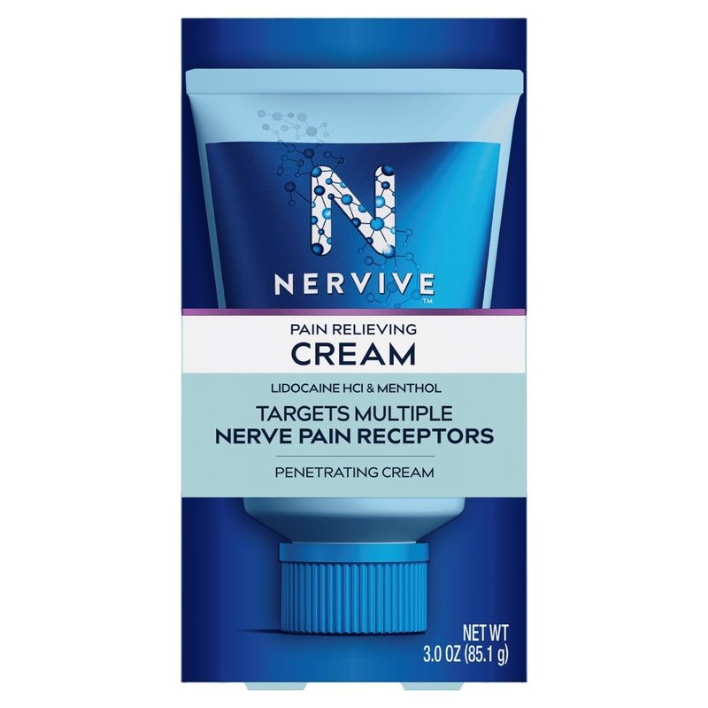 Nervive Nerve Care, Pain Relieving Cream, Max Strength Non-Greasy Topical Pain Reliever with Lidocaine and Menthol for Toes, Feet, Fingers, Hands, Legs & Arms, 3.0oz