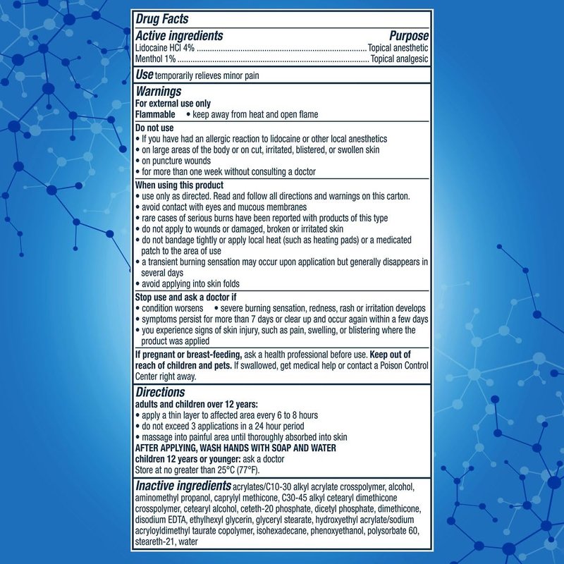 - MAXIMUM STRENGTH RELIEF: Maximum levels of Lidocaine HCL 4percent and Menthol 1percent work to block nerve pain signals to relieve pain