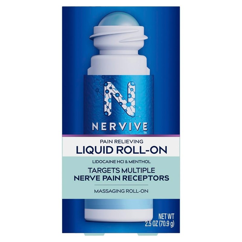 Nervive Nerve Care, Pain Relieving Roll On Liquid, Max Strength No-Mess Topical Pain Reliever with Lidocaine and Menthol for Toes, Feet, Fingers, Hands, Legs & Arms, 2.5oz